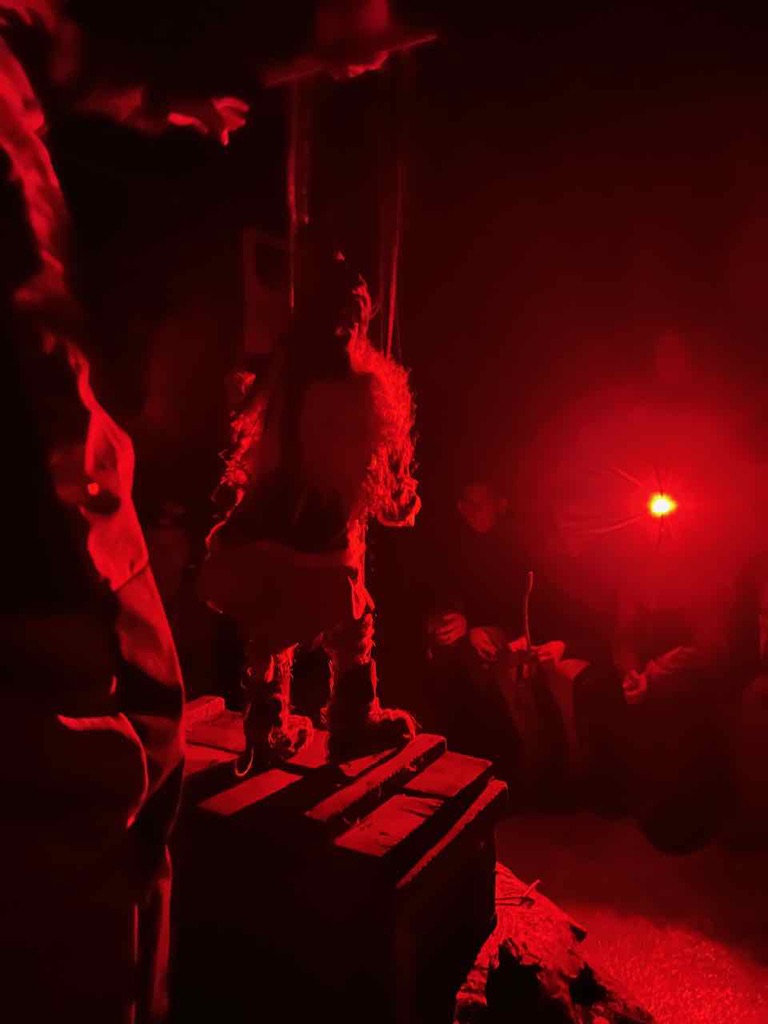 Suivez le guide, Noûve, une marionnette femme de la préhistoire.